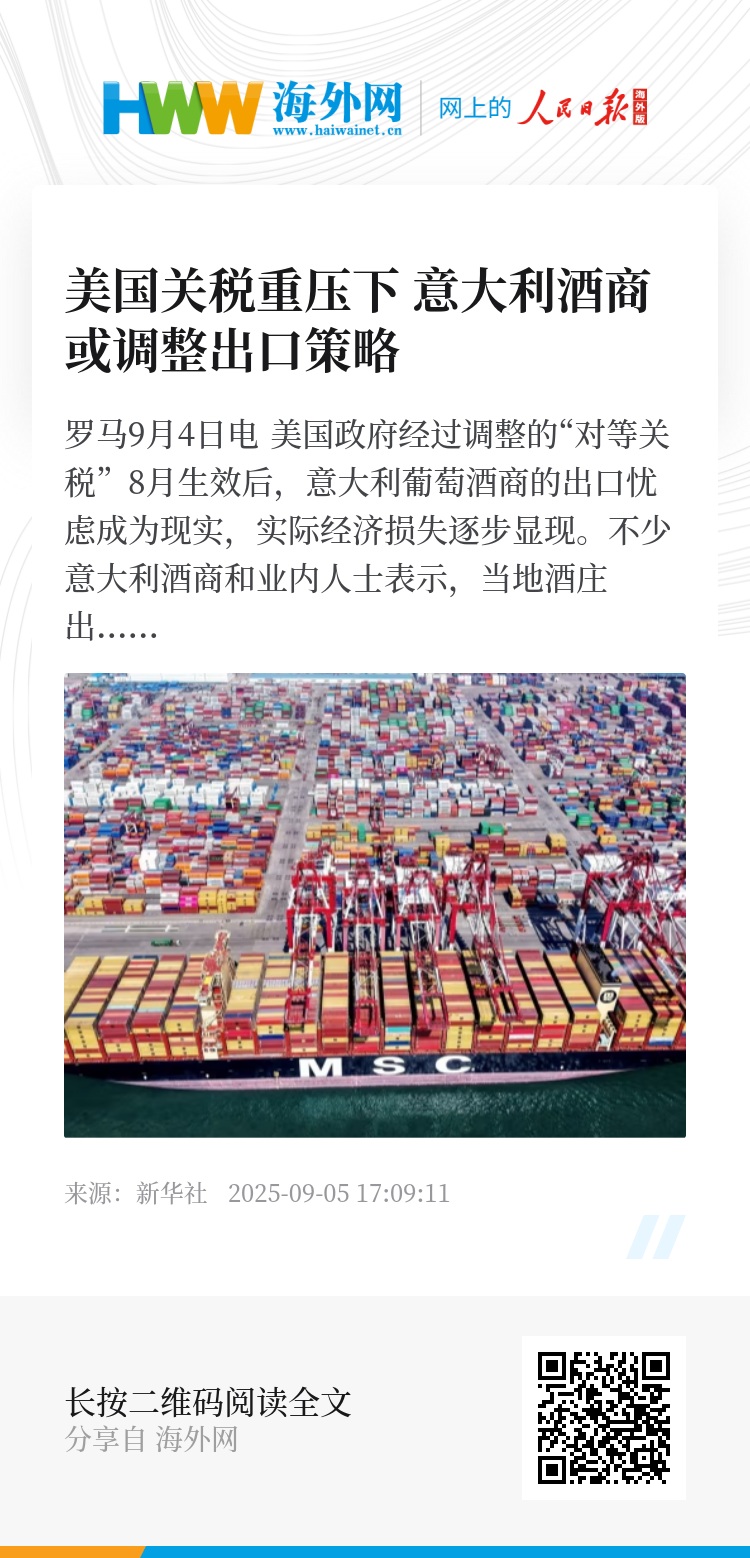 圭多·波罗酒庄位于意大利皮埃蒙特大区,其葡萄酒对美出口约占酒庄总出口量的40%。酒庄庄主法比奥·波罗告诉新华社记者,关税政策对酒庄影响很大。为尽可能降低关税政策带来的负面影响,酒庄被迫让利5个百分点,换取美国市场合作的延续。