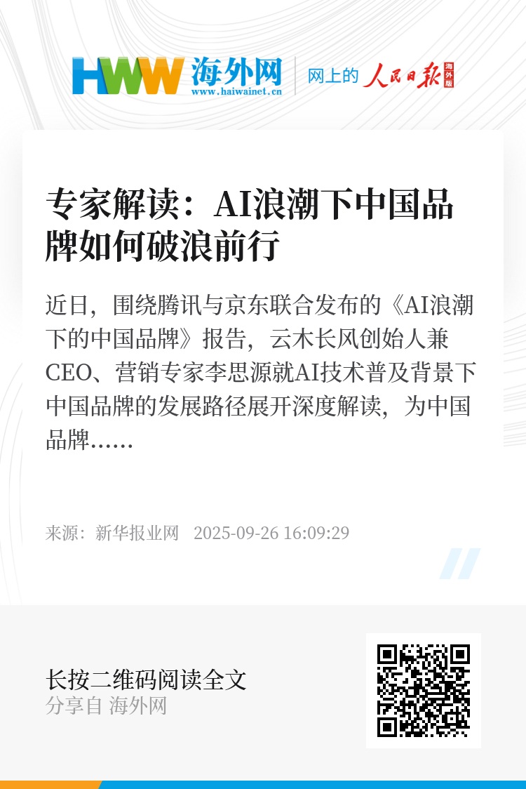 近日,围绕腾讯与京东联合发布的《AI浪潮下的中国品牌》报告,云木长风创始人兼CEO、营销专家李思源就AI技术普及背景下中国品牌的发展路径展开深度解读,为中国品牌在全球竞争中破局提供思考。