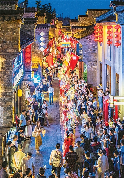 在安徽省芜湖市芜湖古城,“皖南鱼龙大会”以日夜联动的沉浸式体验矩阵激活文旅消费,让“看民俗、逛市集、品美食”成为众多游客的首选。图为10月3日,非遗民俗无为鱼灯巡游展演现场。