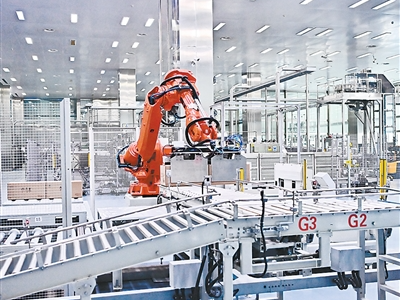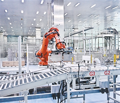 江西省南昌市积极引导企业布局智能制造设备,让科技赋能生产全链条、全领域,通过引进搭载智能制造数字“大脑”平台、智能机械臂、自动导引车、工业互联网等新设备和系统,推动企业提升竞争力和发展能级。图为华润江中湾里制造基地(江中药谷)车间内,智能机械臂进行作业。