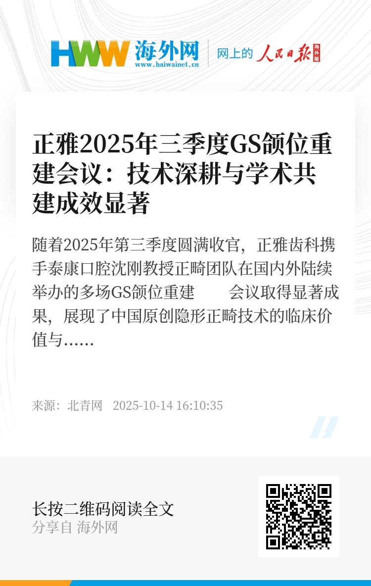 随着2025年第三季度圆满收官,正雅齿科携手泰康口腔沈刚教授正畸团队在国内外陆续举办的多场GS颌位重建 会议取得显著成果,展现了中国原创隐形正畸技术的临床价值与学术影响力。