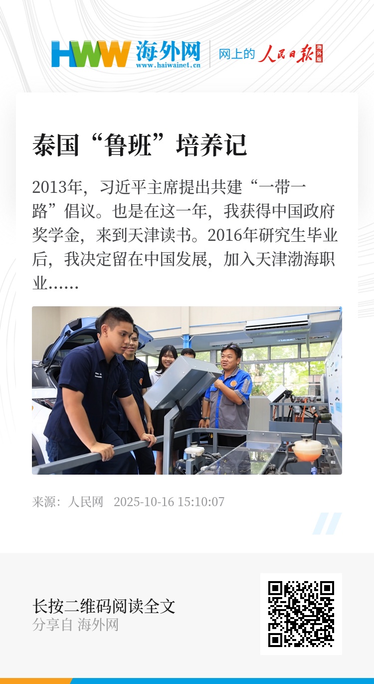 泰国鲁班工坊由泰国大城技术学院和天津渤海职业技术学院于2016年合作设立,是中国首个海外鲁班工坊。至今,已为泰国培养技术技能人才2000多人,并支持超过460名泰国学生来华学习。