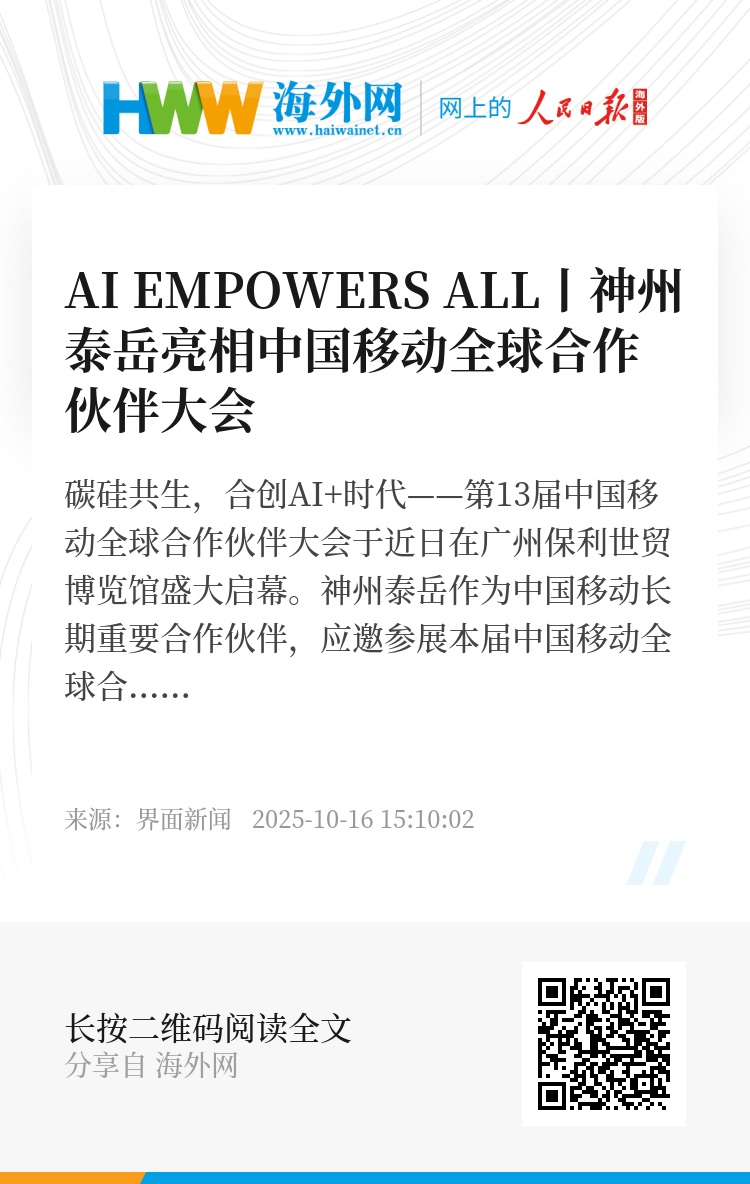 碳硅共生,合创AI+时代——第13届中国移动全球合作伙伴大会于近日在广州保利世贸博览馆盛大启幕。神州泰岳作为中国移动长期重要合作伙伴,应邀参展本届中国移动全球合作伙伴大会。