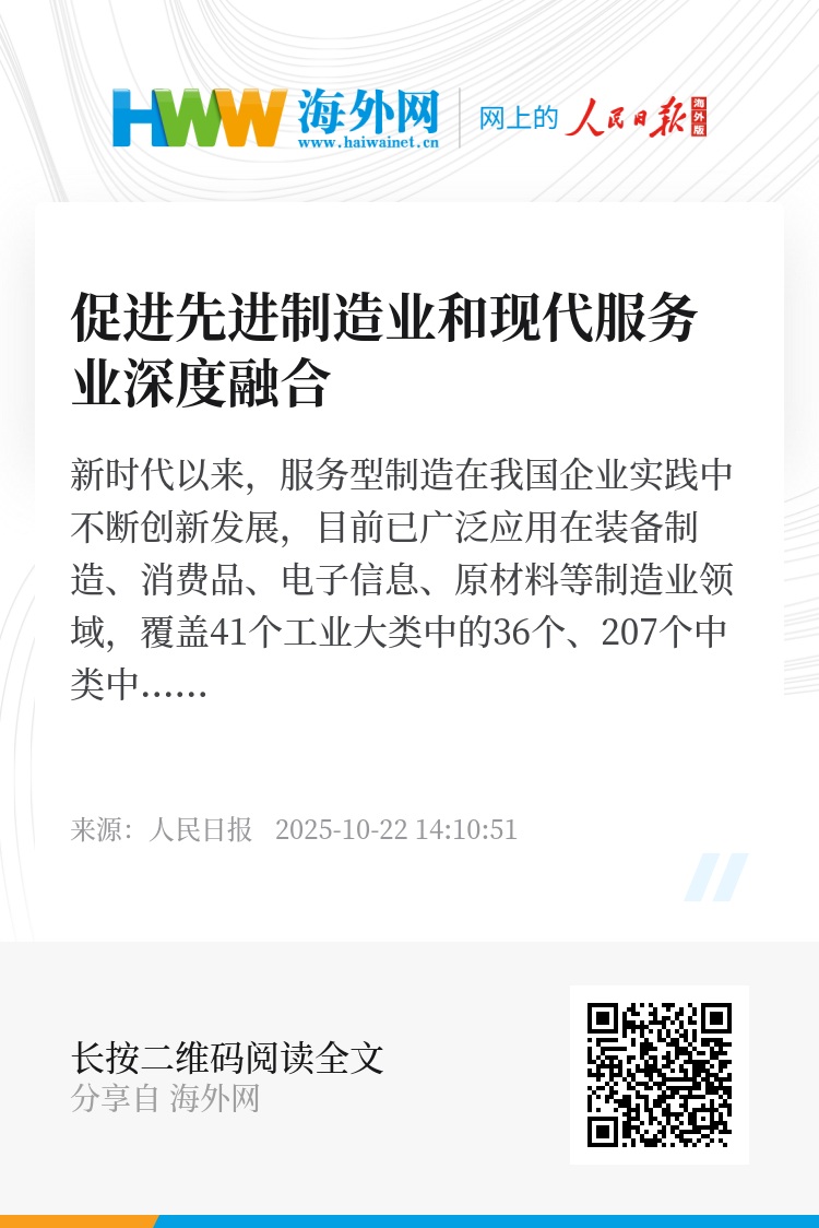 我国制造业门类齐全、产业体系完备,拥有超大市场规模、丰富应用场景,为服务型制造发展提供了坚实基础。我们要把准方向、抓准机遇,通过创新发展服务型制造来推进现代化产业体系建设。(罗仲伟)