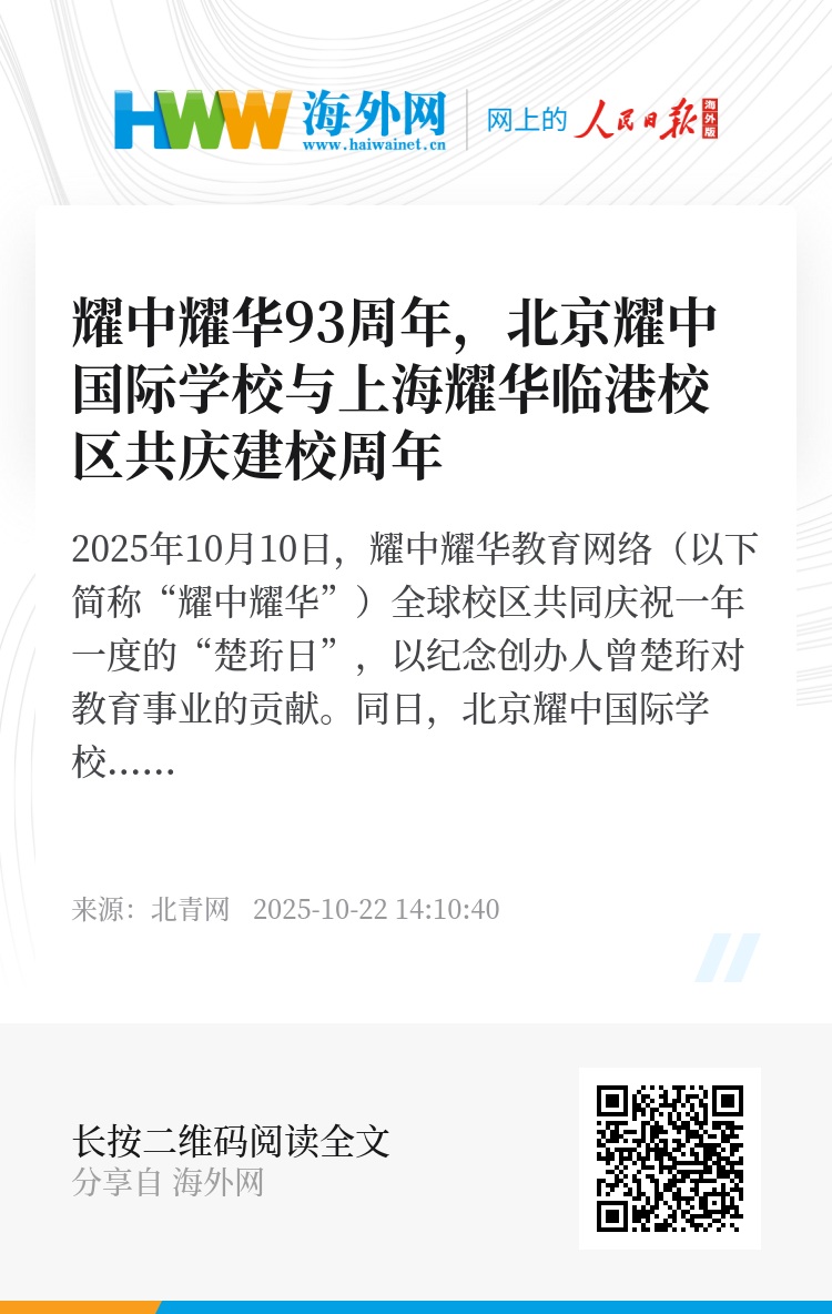 九十三周年是耀中耀华发展历程中的重要里程碑,也为机构迈向百年教育使命奠定新基础。目前,耀中耀华全球校友已超三万人。学校表示,立足中国、面向世界,耀中耀华将坚守育人初心,持续深耕中国市场,完善现代化教育服务体系,推动各校区协同高质量发展,为培养具备全球竞争力的优秀人才提供创新性支持,为中国教育事业的现代化和国际化进程贡献更大力量。