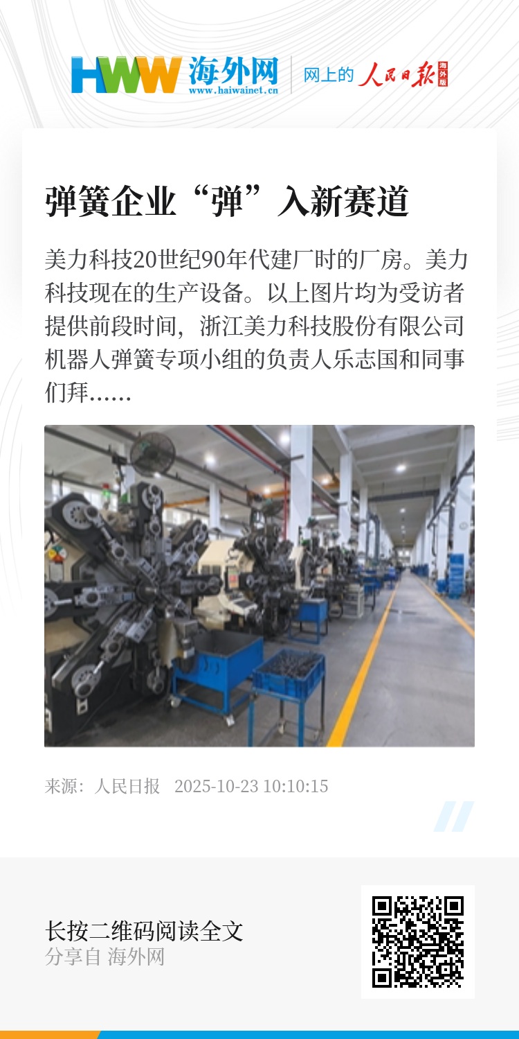 “公司成立35年,在弹簧领域积累了丰富经验,为我们进入新产业提供支撑。”美力科技创始人、董事长章碧鸿说。