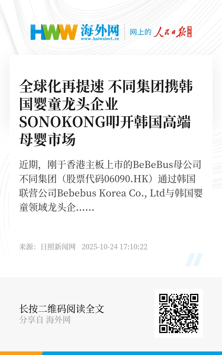 近期,刚于香港主板上市的BeBeBus母公司不同集团(股票代码06090.HK)通过韩国联营公司Bebebus Korea Co., Ltd与韩国婴童领域龙头企业SONOKONG Co., Ltd.(066910.KQ)达成合作:BeBeBus的首批产品已完成入驻准备,即将通过SONOKONG的销售体系登陆韩国市场。