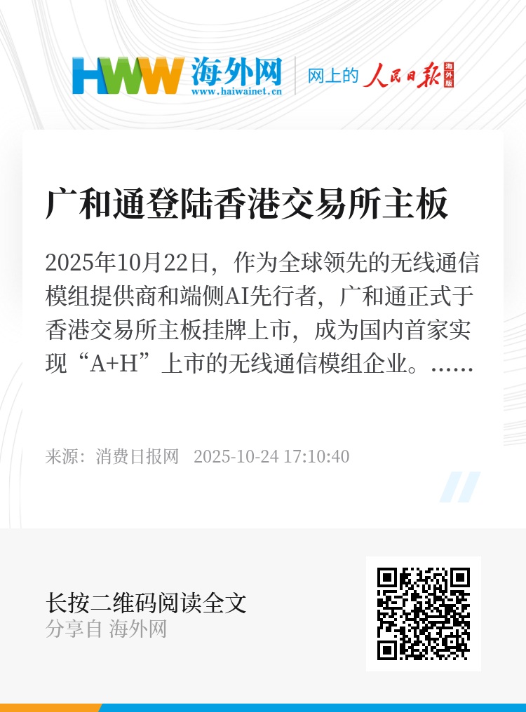 2025年10月22日,作为全球领先的无线通信模组提供商和端侧AI先行者,广和通正式于香港交易所主板挂牌上市,成为国内首家实现“A+H”上市的无线通信模组企业。