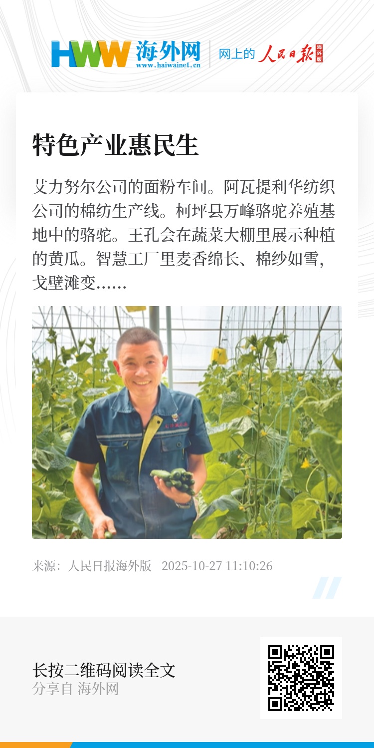 智慧工厂里麦香绵长、棉纱如雪,戈壁滩变“农产绿洲”,“沙漠之舟”驮起增收新希望……一幅“以城促产、以产兴城、以业聚人”的高质量发展画卷,正在天山南麓的新疆维吾尔自治区阿克苏地区徐徐展开,让当地群众共享繁荣发展的美好成果。