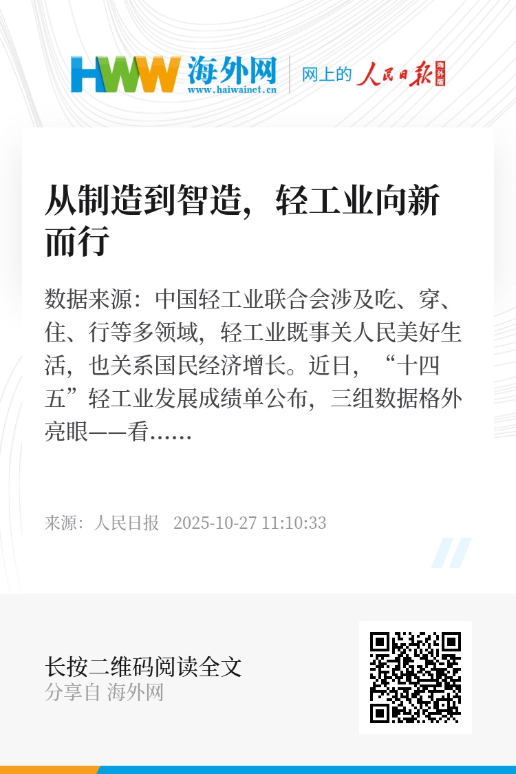 近日,“十四五”轻工业发展成绩单公布,三组数据格外亮眼——