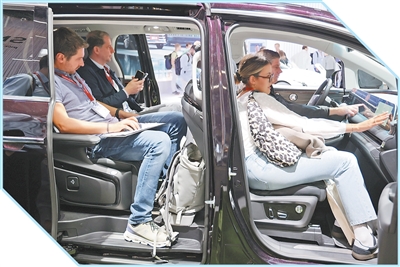 2025年德国国际汽车及智慧出行博览会9月在慕尼黑举行。博览会吸引116家中国展商参展,数量居国际展商之首。图为参观者在博览会上体验中国品牌新能源汽车。