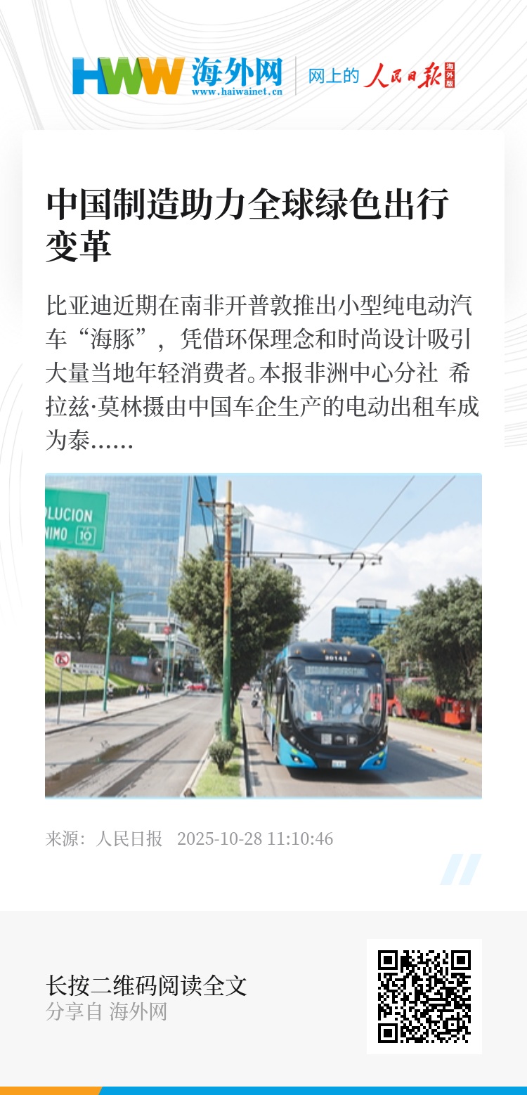在东南亚,轻巧的电动摩托车有效缓解了城市通勤压力;在欧洲,中国品牌电动汽车卓越的续航能力与智能驾驶体验赢得广泛赞誉;在拉美,驰骋于大街小巷的电动大巴成为城市新的流动风景线。