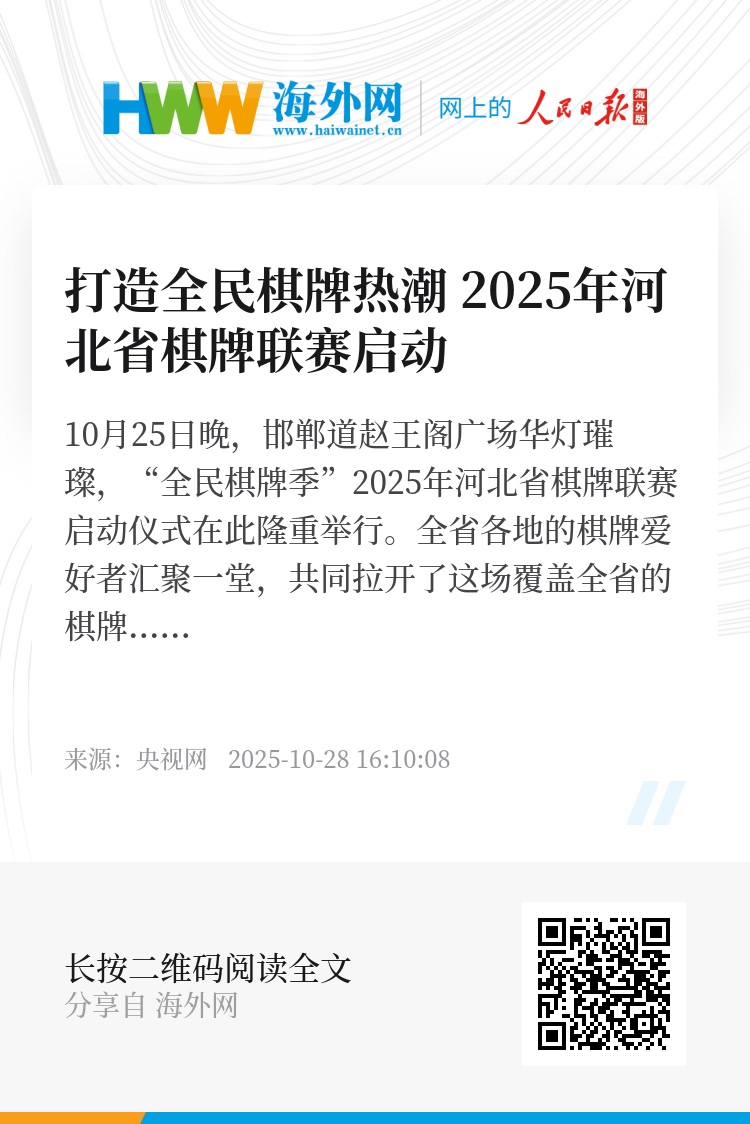 联赛遵循“政府主导、部门协同、社会参与”的总体工作思路,创新采用“分站赛+总决赛”的办赛模式。赛事将在邯郸市、保定市、秦皇岛市等地设置分站赛,最终在石家庄市举行总决赛,形成“多点联动、全省覆盖”的赛事格局。赛事致力于打造“月月有赛事、周周有比赛、天天有活动”的全民棋牌热潮,既充分彰显了传统棋牌项目的深厚文化底蕴,又注入了群众体育的蓬勃活力,为建设体育强省、满足群众对美好生活的需求提供了强大动力。