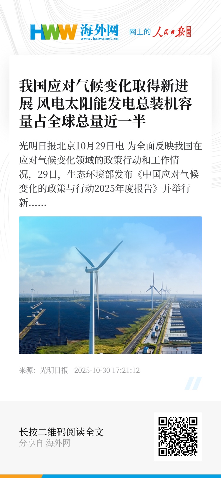 光明日报北京10月29日电 为全面反映我国在应对气候变化领域的政策行动和工作情况,29日,生态环境部发布《中国应对气候变化的政策与行动2025年度报告》并举行新闻发布会。