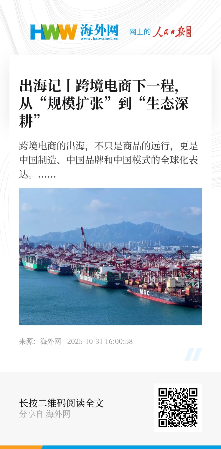 跨境电商的出海,不只是商品的远行,更是中国制造、中国品牌和中国模式的全球化表达。如今,中国跨境电商加速出海,考验也在升级。在政策支持、产业基础与技术创新的多重驱动下,这一新业态仍拥有广阔的成长空间。未来,如何在复杂的国际环境中持续释放创新动能、赢得长期信任,将成为下一阶段决定胜负的关键。(海外网 穆瑀宸)