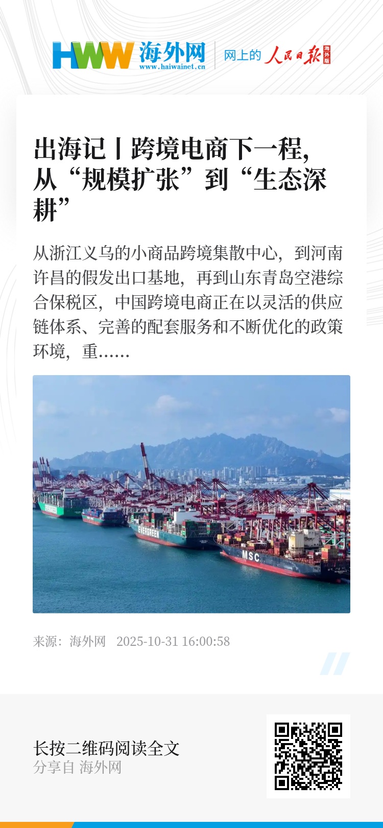 从浙江义乌的小商品跨境集散中心,到河南许昌的假发出口基地,再到山东青岛空港综合保税区,中国跨境电商正在以灵活的供应链体系、完善的配套服务和不断优化的政策环境,重新定义“买卖全球”的模式。