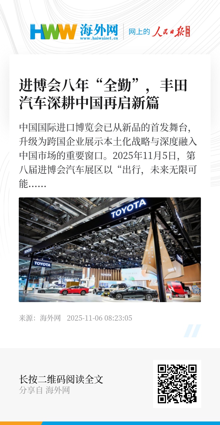 八年来,进博会已成为世界观察中国开放决心与市场机遇的重要窗口。从丰田的参展轨迹可见,跨国车企在中国的发展逻辑已发生深刻变化:不再是单向技术输出,而是双向能力共建;不再局限于产销体系,而是融入创新生态。这种融入,不仅改变了跨国企业在华的发展模式,更在重塑全球汽车产业的合作范式。
