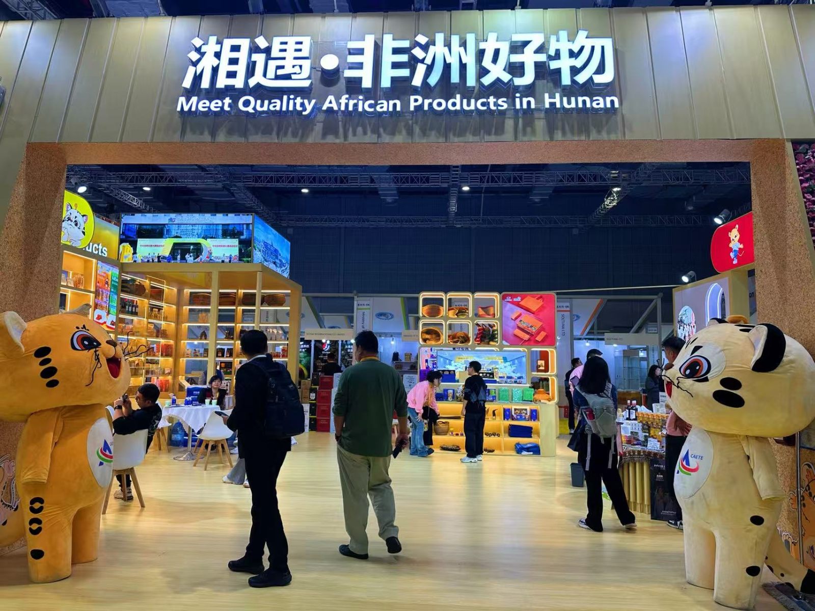 在国家会展中心(上海)农食产品展区8.1H,湖南省商务厅设置湘遇·非洲好物展区,现场中非IP“华宝”“非宝”人偶互动,观众可尝试手打柠檬非洲茶、埃塞俄比亚咖啡、马里乳木果护肤系列等,“湘”“沪”直播团队联线带货,让更多非洲好物亮相上海。同时,在湖南馆常设展馆设置非洲好物专区,200余款产品可销可展可售,打造中国老百姓身边的非洲驿站,让更多非洲资源性产品走进中国市场。