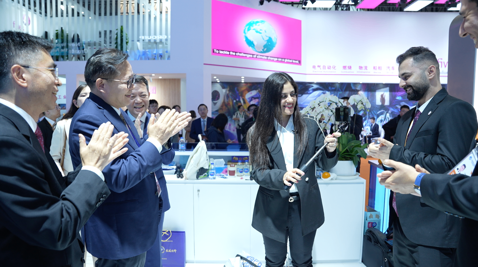 11月6日下午,这张课桌迎来了曾经的“小主人”。振华石油奖学金项目首批留学生、东巴油田青年工程师阿雅来到展区,通过视频直播,让巴格达振华希望学校的20多名学生“云逛进博”。无人机、人形机器人、载人飞行器、外骨骼等高科技展品,通过一方小小的手机屏幕,为孩子们打开了一扇望向更广阔世界的窗口。