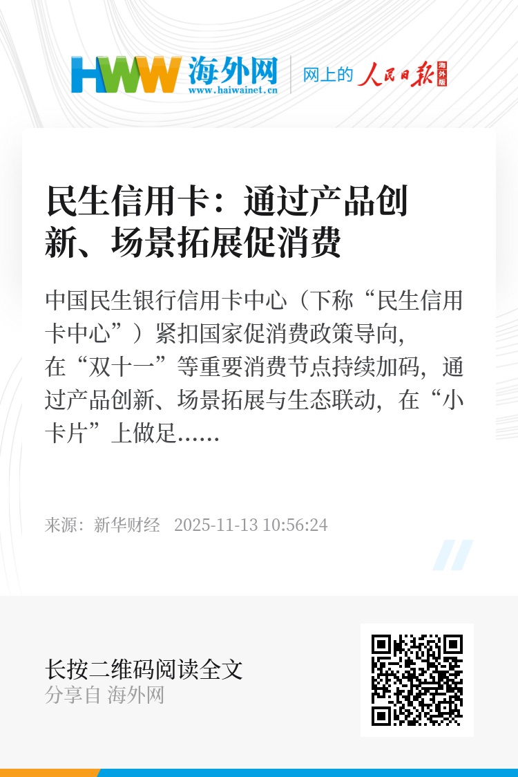 中国民生银行信用卡中心(下称“民生信用卡中心”)紧扣国家促消费政策导向,在“双十一”等重要消费节点持续加码,通过产品创新、场景拓展与生态联动,在“小卡片”上做足“大文章”,展现出服务民生、提振消费的金融担当。