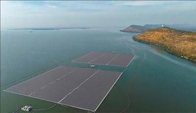 中企在泰国孔敬府承建的乌汶叻水面漂浮光伏电站,运用人工智能技术,有效融合水面光伏、清洁水电、高效储能和智慧管理系统。