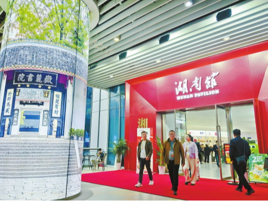 进博会期间,湖南馆既有湘绣的流光溢彩、湘瓷的古朴卓雅、湘茶的醇厚芬芳,又有苗绣的古艺新颜、织锦的时尚创新及非物质文化遗产的时代新韵。“创·智汇高地”集中展示湖南打造“三个高地”的卓越成果,近20家明星企业携轨道列车、机器人、新能源、垃圾发电等前沿科技与产品亮相,彰显制造湖南、科创湖南、开放湖南的强大竞争力。“味道湖南”特色展区,老长沙米粉、臭豆腐、糖油粑粑、葱油饼、毛氏红烧肉、剁椒鱼头、稻香拿铁、柠季手打柠檬茶等湖湘美食、茶咖饮品成为传播湖湘文化的友好使者。“相链湖南”展区,汇聚湖南外贸优品与全球甄选好物,通过精准匹配与高效对接,推动湘品出海,优品入湘,构建内外贸一体化发展新格局。