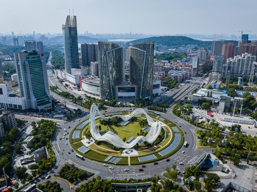 空中俯瞰武汉光谷广场综合体。新华社记者伍志尊 摄