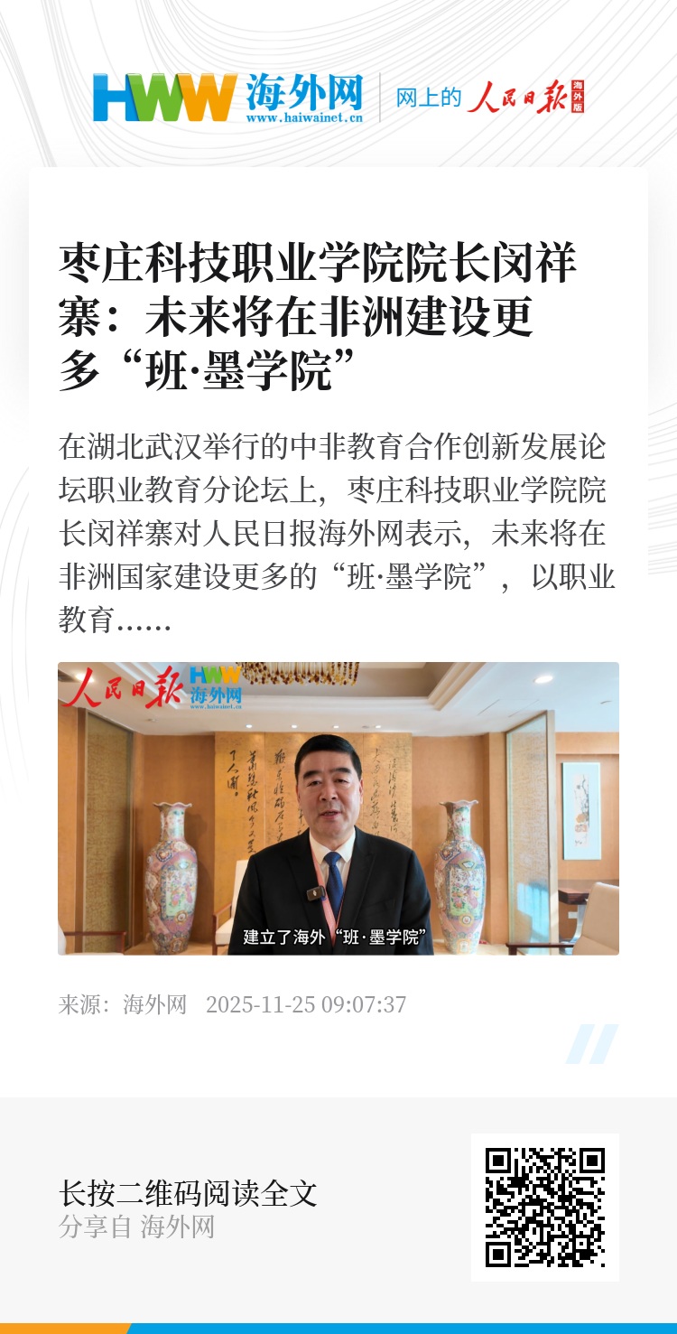 在湖北武汉举行的中非教育合作创新发展论坛职业教育分论坛上,枣庄科技职业学院院长闵祥寨对人民日报海外网表示,未来将在非洲国家建设更多的“班·墨学院”,以职业教育助力海外中资企业的发展。