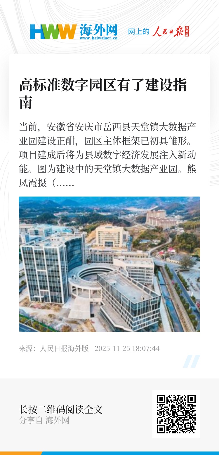 各地也在积极推进。例如,广东省出台《广东省人工智能赋能制造业高质量发展行动方案(2025—2027年)》,明确提出打造一批高标准数字园区;安徽省人民政府办公厅印发的《安徽省以新型技术改造推动制造业高端化智能化绿色化发展行动方案》提到,争创一批国家高标准数字园区;湖南省明确了真金白银的支持方案,湖南省工信厅、湖南省财政厅联合印发的《深化“智赋万企”行动 加快制造业数字化转型实施方案》提到,对获评国家级、省级数字园区的园区,分别按项目投资额的30%、20%给予支持,最高不超过300万元、100万元。