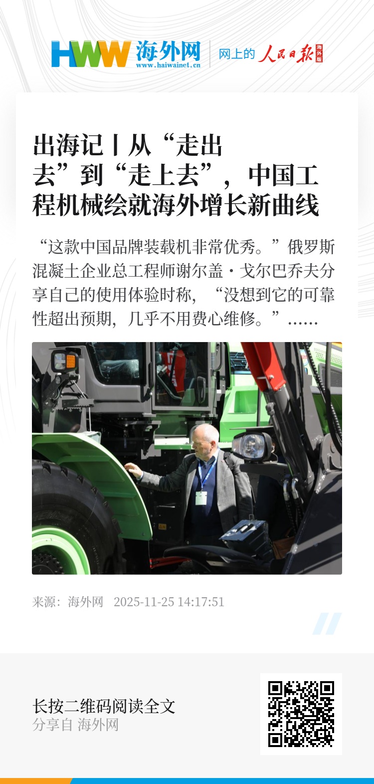 这样的认可,是中国工程机械出海交出的一份满意答卷。近年来,中国工程机械凭借先进技术与优质本地化服务,在海外市场强势突围。从东南亚热火朝天的基建工地到欧洲高标准的工业园区,从非洲广袤的矿山到中东繁忙的能源项目,随处可见“中国制造”的身影。这场跨越山海的产业远航,见证的不仅是出口销量的稳步攀升与市场版图的持续扩大,更昭示着中国工程机械从单纯“走出去”到凭借硬实力“走上去”。