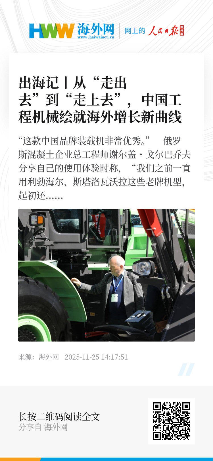 中国社会科学院工业经济研究所研究员李钢在接受人民日报海外网采访时表示,这表明海外市场已成为工程机械行业核心支撑,工程机械增长实现“海内外双轮驱动”,这种增长态势是具备可持续性的。