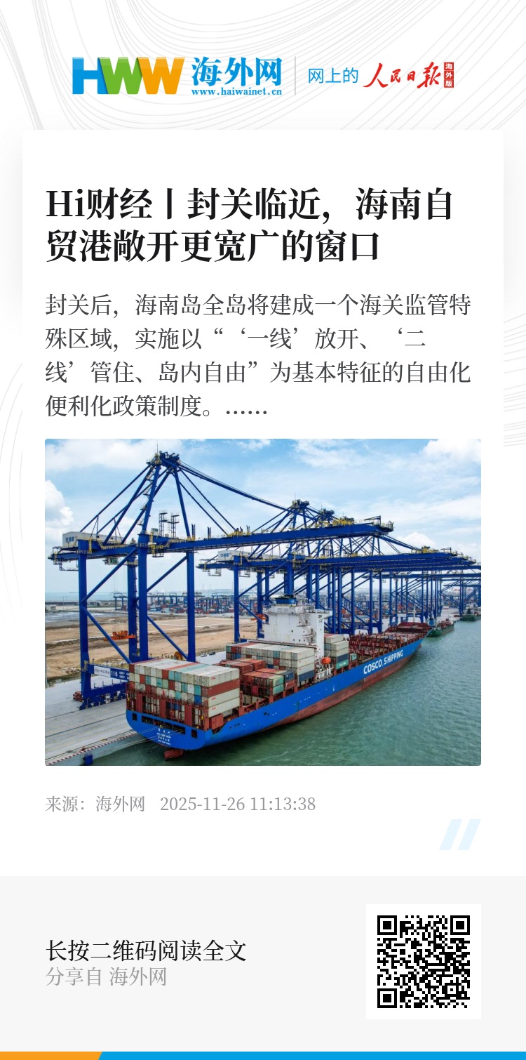 海南大学国际商学院教授颜洪平告诉人民日报海外网,“封关运作是海南自贸港建设的关键里程碑,标志着其从政策试点迈向制度型开放的新阶段。”