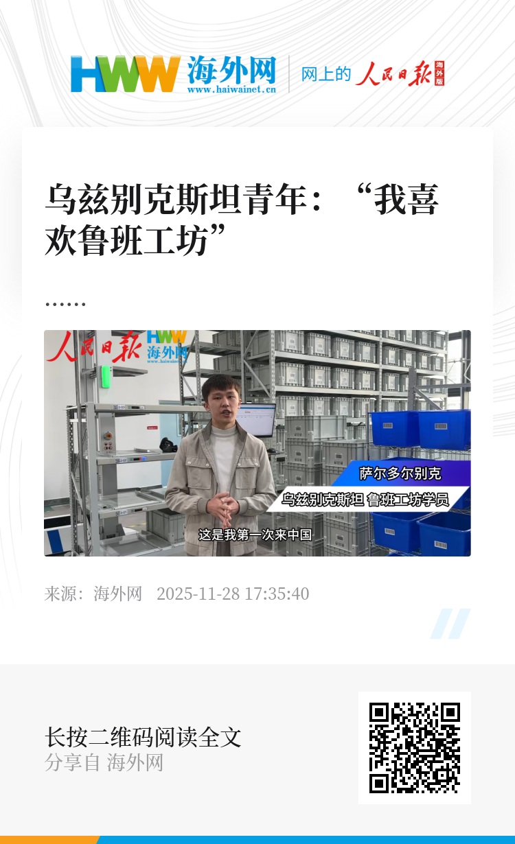 乌兹别克斯坦青年:“我喜欢鲁班工坊”