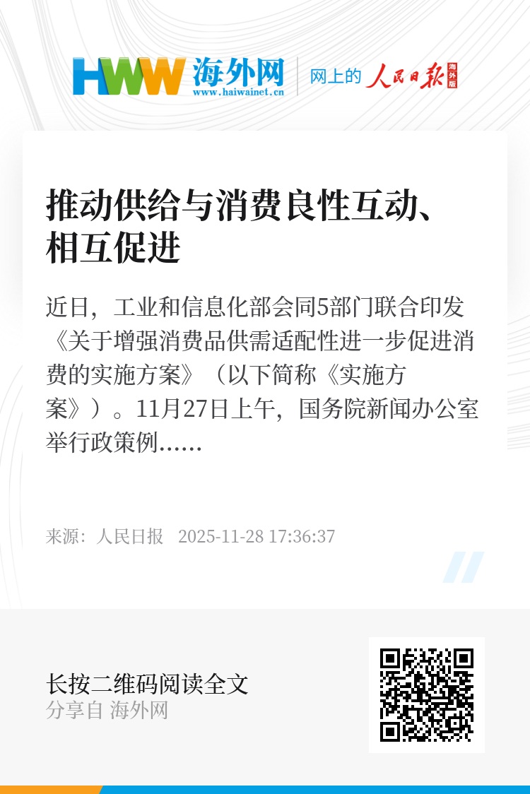 “国家发展改革委将从加强技术引领、提升品牌标准、聚焦民生需求三方面提高供给质量水平,推动高质量消费品进入居民生活。”国家发展改革委就业收入分配和消费司司长吴越涛表示,在技术创新上深入实施“人工智能+”行动,推动智能终端“万物智联”;在场景创新上加快推出应用场景项目清单,围绕建设综合性重大场景组织实施若干重大项目,打造一批带动面广、示范性强的消费新场景;还将逐步引导企业加大优质适老化产品供给,加强供需双方精准对接,促进银发消费扩容提质。