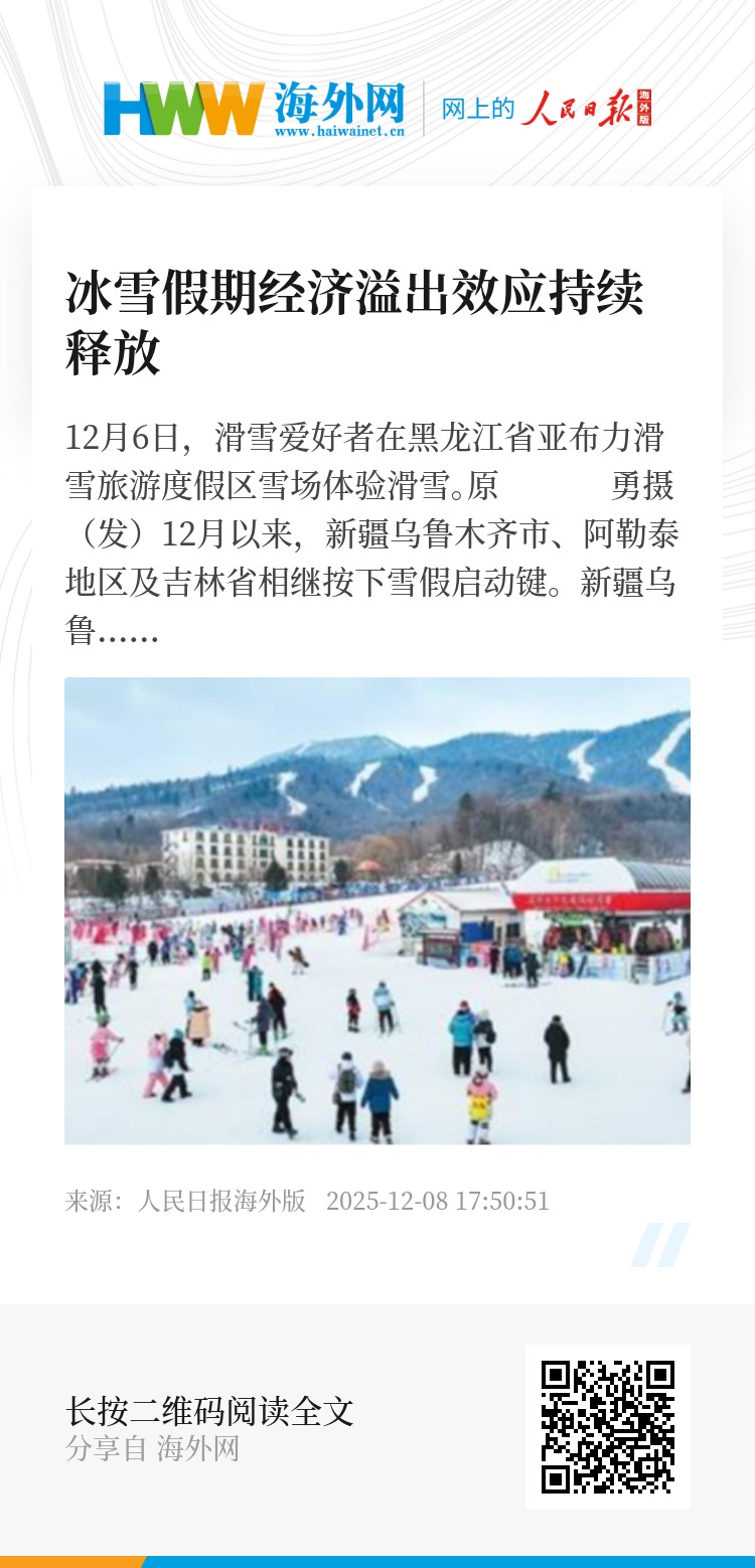 “政策组合拳有效降低冰雪消费参与门槛。”钟淑如认为,多部门协同,配套支撑体系持续完善,冰雪“冷资源”正加速向文旅“热经济”转化,为区域经济发展注入持久动力。