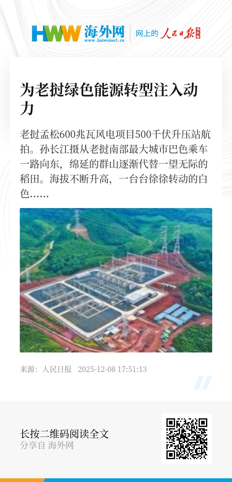 “中国拥有现代化的技术和经验。老中能源合作对老挝清洁能源转型具有重要意义,为东盟国家合作开发替代能源、降低能源风险提供了示范。期待未来双方继续加强清洁能源领域合作,促进两国和区域经济社会发展。”琅潘表示。(记者 杨 一)