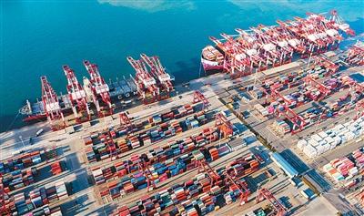 12月8日,随着一艘艘集装箱船完成装卸作业,青岛港今年货物吞吐量累计突破7亿吨,国际航运枢纽竞争力指数稳居东北亚之首。图为青岛港前湾集装箱码头一派繁忙景象。