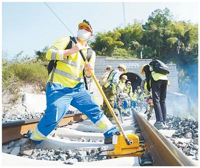 线路工夜间坚守岗位,保障轨道线路安全顺畅