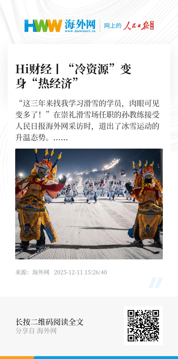 “这三年来找我学习滑雪的学员,肉眼可见变多了!”在崇礼滑雪场任职的孙教练接受人民日报海外网采访时,道出了冰雪运动的升温态势。美团旅行数据显示,平台“附近的滑雪场”的搜索量同比增长明显,“滑雪面罩”“滑雪服”搜索热度显著攀升。去哪儿旅行数据显示,多地滑雪场所在地区酒店预订量环比增长五到七成。此前,2025国际冬季运动博览会主论坛上发布的《中国冰雪产业发展研究报告(2025)》显示,今年我国冰雪产业规模将突破万亿元大关。“冷资源”切实化身成了“热经济”。