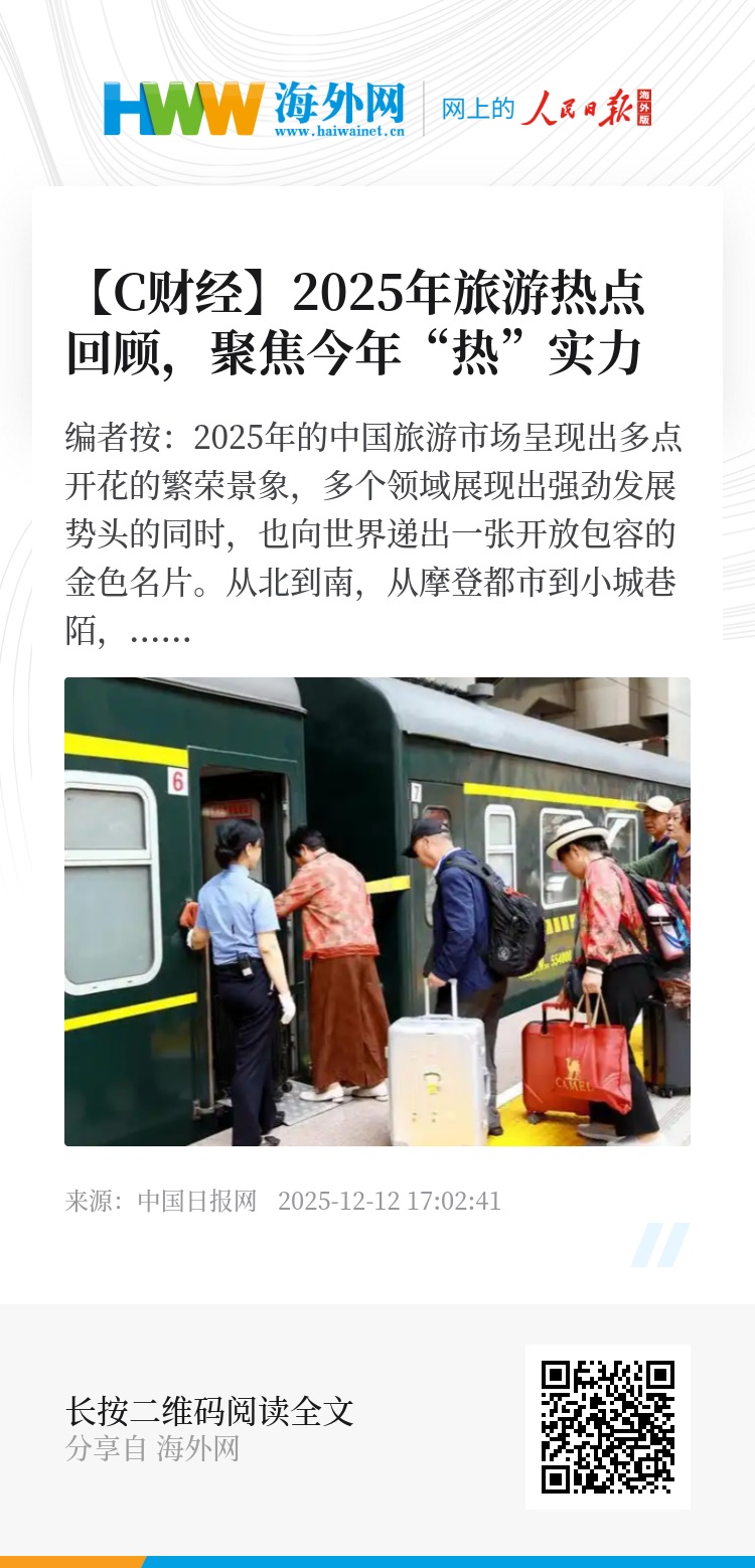 编者按:2025年的中国旅游市场呈现出多点开花的繁荣景象,多个领域展现出强劲发展势头的同时,也向世界递出一张开放包容的金色名片。从北到南,从摩登都市到小城巷陌,入境游与国内游双轮驱动,政策红利与消费升级共振,共同勾勒出一幅“热”力全开的旅游新图景。