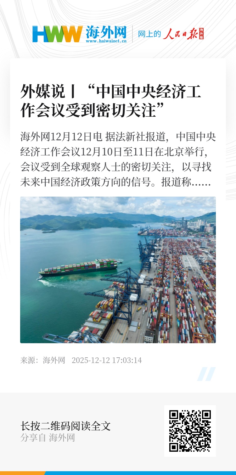 海外网12月12日电 据法新社报道,中国中央经济工作会议12月10日至11日在北京举行,会议受到全球观察人士的密切关注,以寻找未来中国经济政策方向的信号。