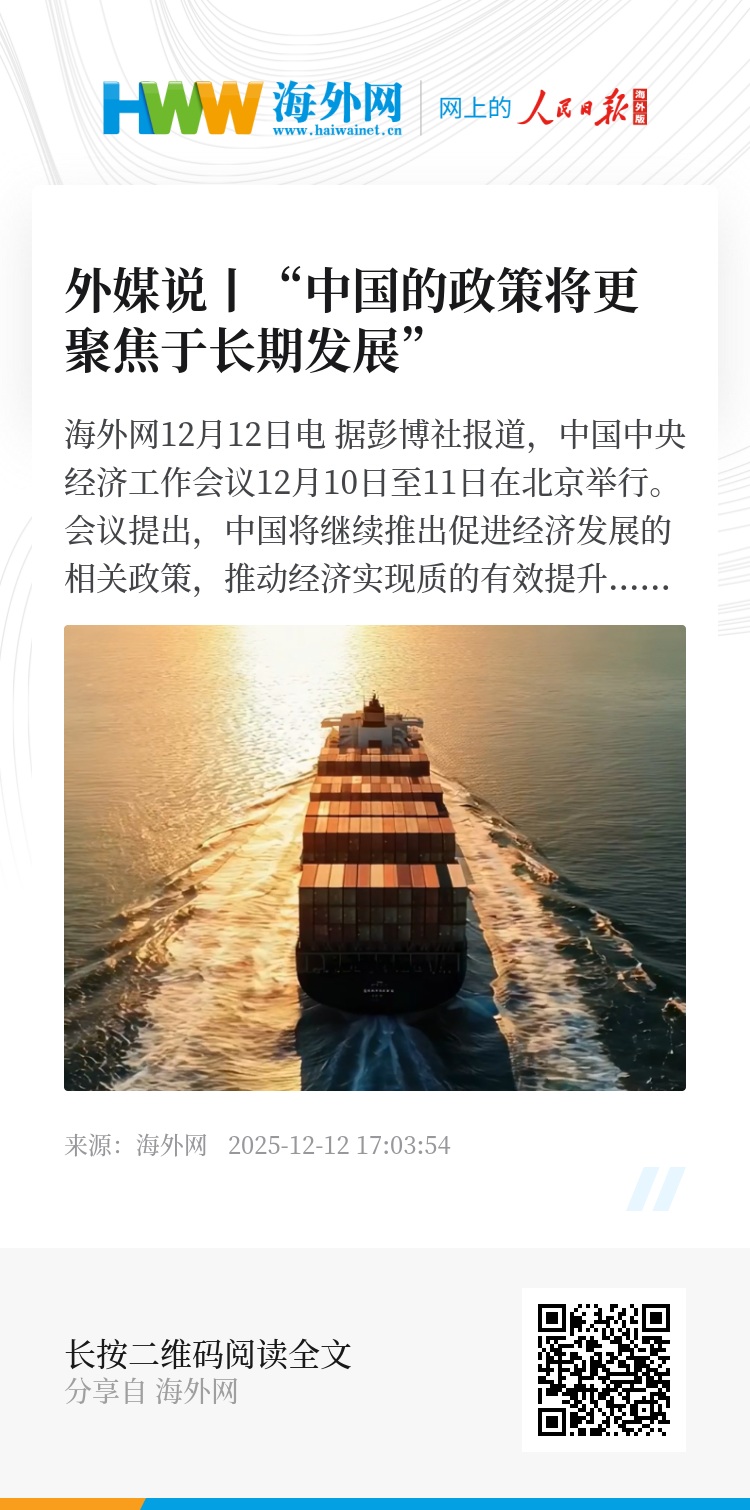 报道称,中国经济在2025年展现出惊人韧性,中国通过积极开拓多元化出口市场,保持了强劲的增长势头。渣打银行一名经济学家认为,“一年前,面对外部的不确定性,中国及时推出政策措施应对。今年,中国的政策将更聚焦于长期发展。”(海外网 李芳)