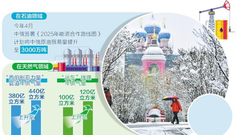 在天然气领域,今年9月,俄罗斯天然气工业股份公司与中国石油天然气集团公司在北京签署了4份文件,其中包括一份拓展双方合作方向的战略合作协议。双方一致同意将“西伯利亚力量”管道年供气量从380亿立方米提升至440亿立方米,将“远东”线路的年供气量从100亿立方米增加至120亿立方米。俄气公司预计,未来中国天然气消费的长期增长将保持强劲势头。