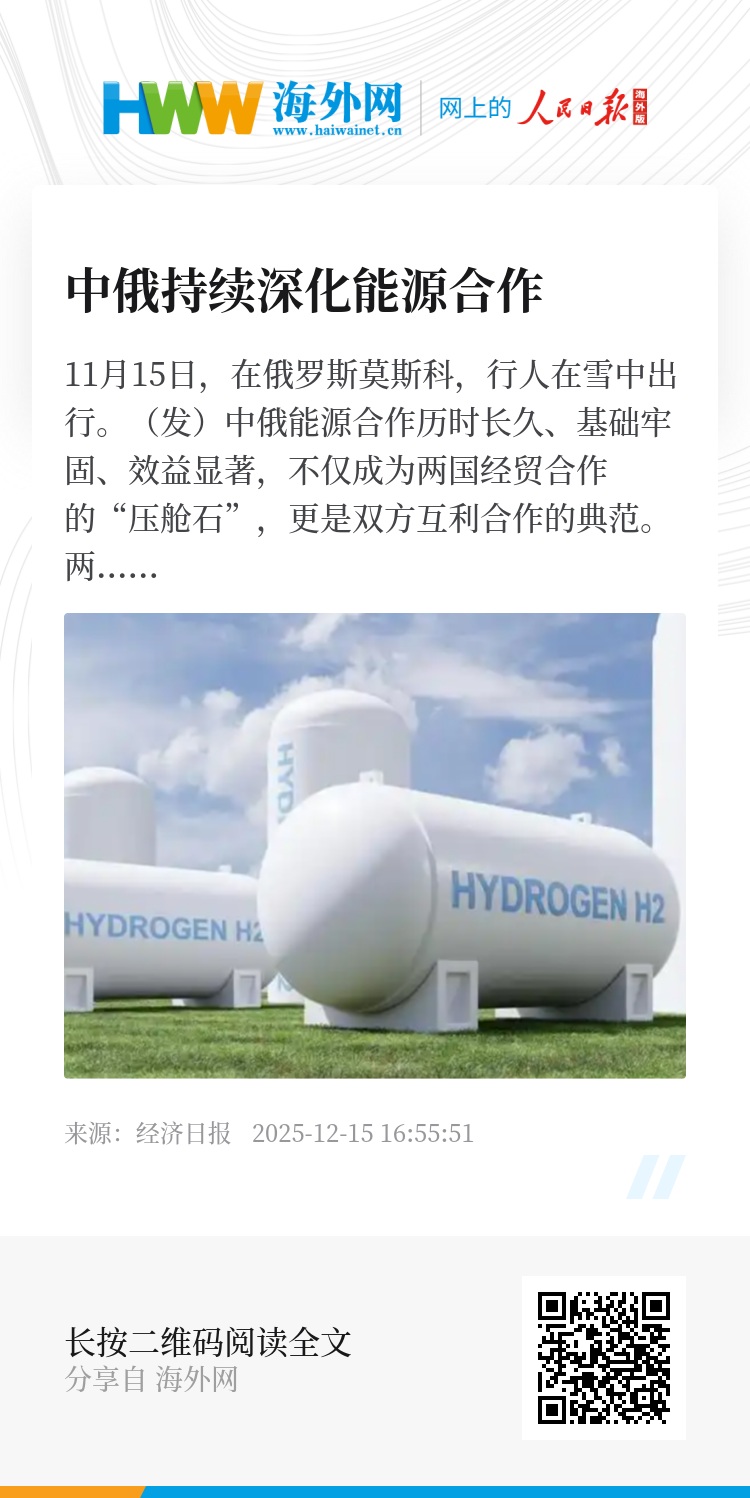 中俄能源合作不仅构筑了两国关系发展的坚实桥梁,也为全球能源治理体系转型提供了重要范式。在绿色转型与能源安全并重的全球背景下,中俄以务实合作诠释了“互利共赢”的深刻内涵,为构建公平、稳定、可持续的全球能源治理新格局注入了强大正能量。谢钦表示,俄中两国深化战略合作是应对这些全球挑战的有效途径。(记者 李春辉)