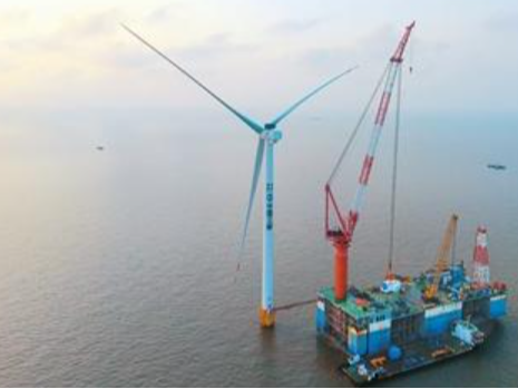 图为三峡江苏大丰800兆瓦海上风电项目机组。