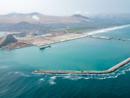 图为秘鲁钱凯港的码头操作区。(新华社发)