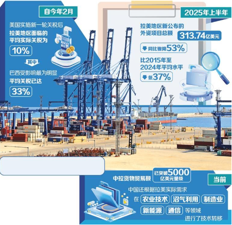 数据显示,自今年2月美国实施新一轮关税后,拉美地区面临的平均实际关税为10%,其中巴西受影响最为明显,平均关税已达33%。尽管初步预测显示,2025年该地区货物出口额仍可能保持5%的增长,但这背后潜藏着结构性风险。