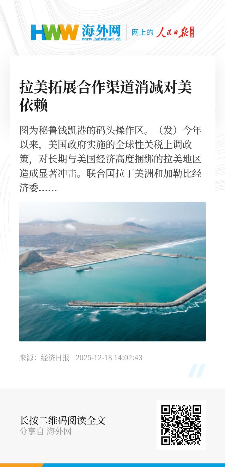 “离天堂太远,离美国太近”——这句拉美谚语,深刻道出了其地缘政治经济现实中的历史性困局。两个世纪以来,“门罗主义”的幽灵始终徘徊。在经济全球化深度调整的今天,拉美国家经济能否通过坚定的结构转型、有效的区域整合与开放的全球多元合作,最终跳出“新门罗主义”的罗网,仍需拭目以待。(记者 杨啸林)