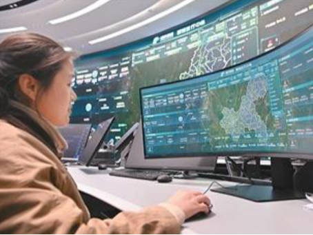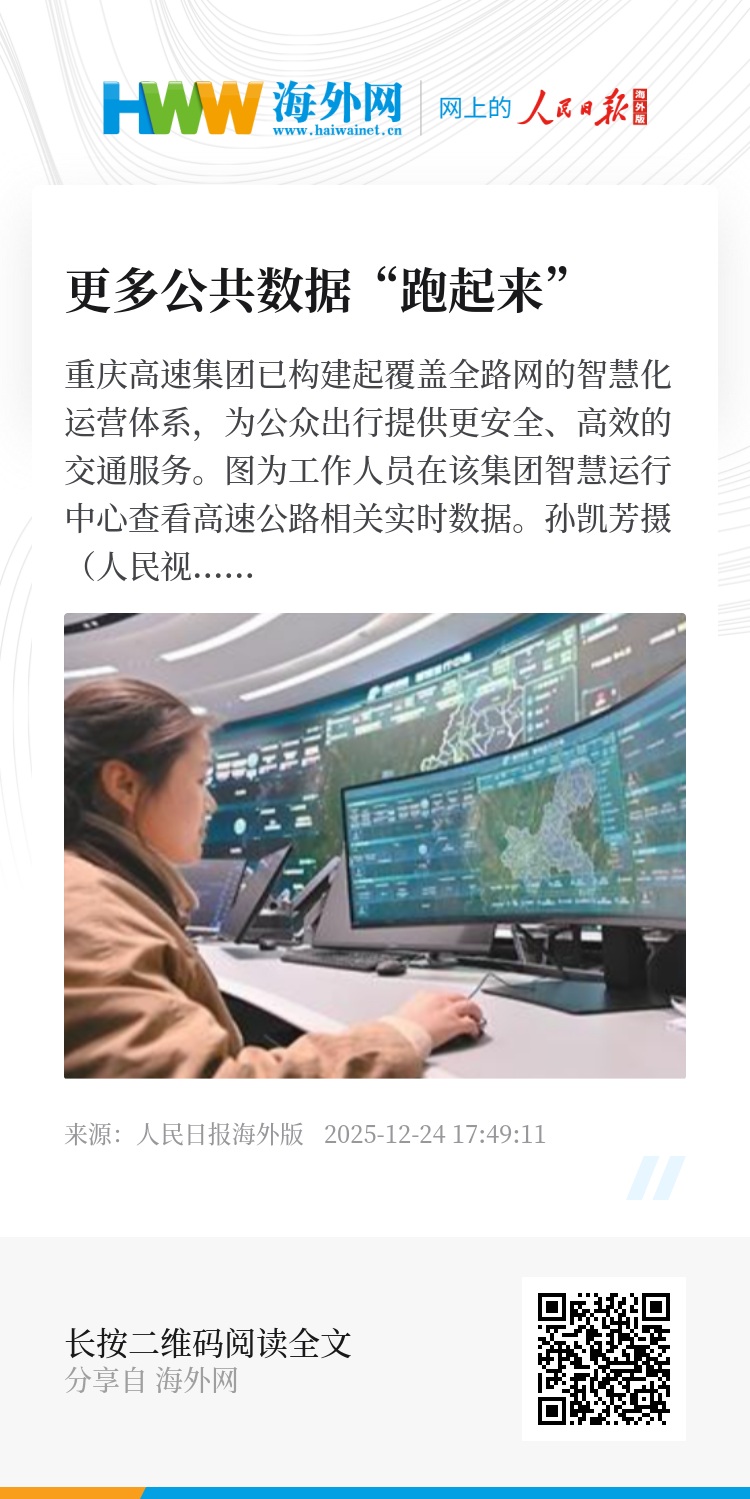 重庆高速集团已构建起覆盖全路网的智慧化运营体系,为公众出行提供更安全、高效的交通服务。图为工作人员在该集团智慧运行中心查看高速公路相关实时数据。
