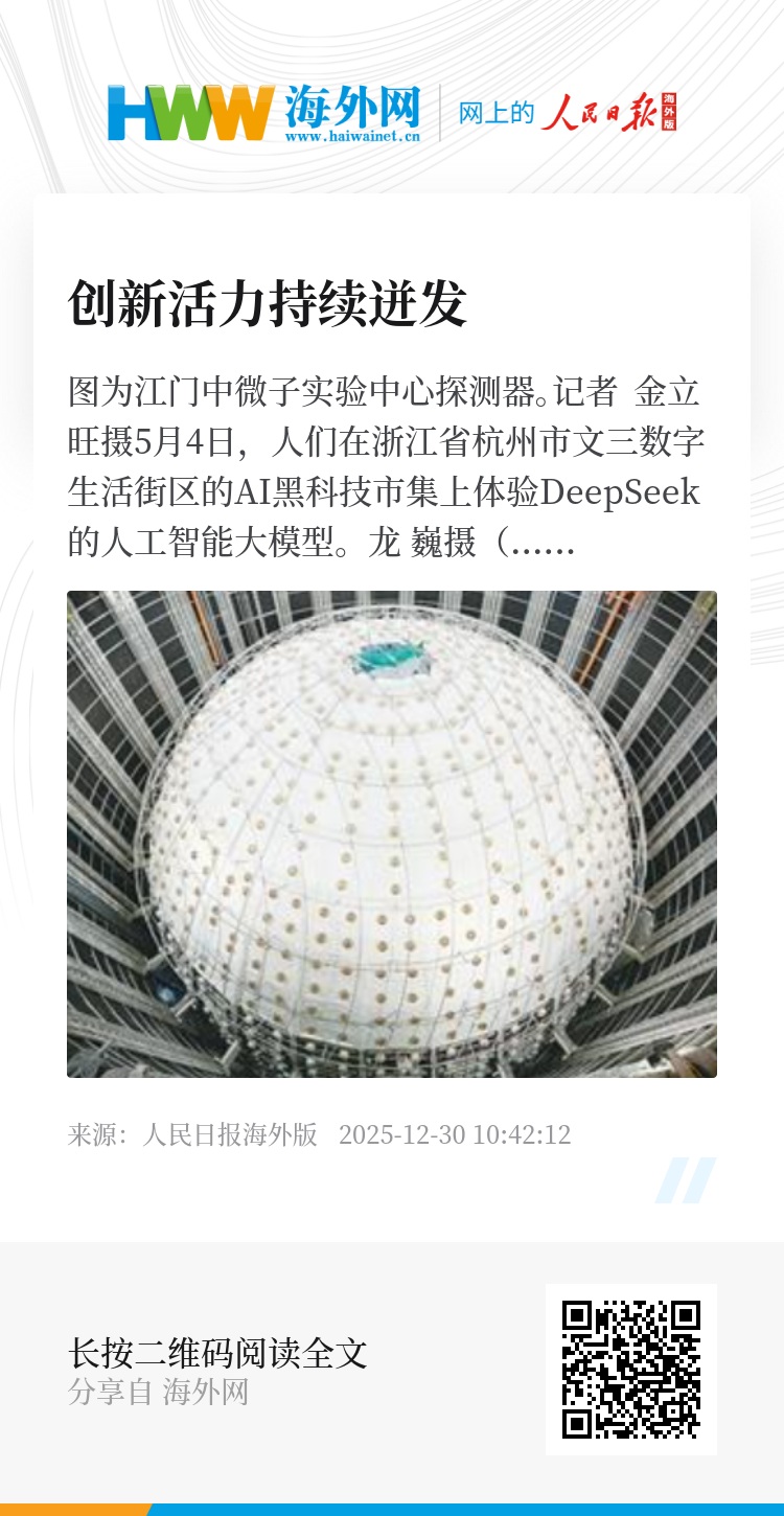2025年,全球可再生能源在中国引领下实现迅猛发展,太阳能和风能新增发电量覆盖上半年全球新增用电,总量超越化石能源,这一成果位列《科学》杂志年度十大科学突破榜首,为全球应对气候变化、实现“双碳”目标提供了重要支撑。江门中微子实验、国际热核聚变实验堆(ITER)等大科学工程中,中国主动开放共享平台资源,吸引全球顶尖科学家参与研究,共同破解人类面临的科学难题。